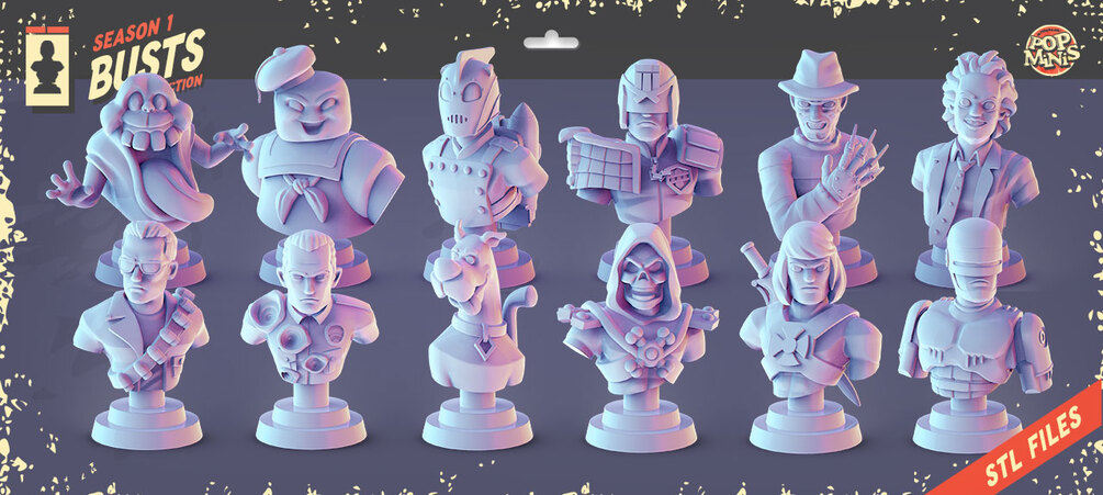 Pop culture character busts as 12 STL files, ready for 3D printing!