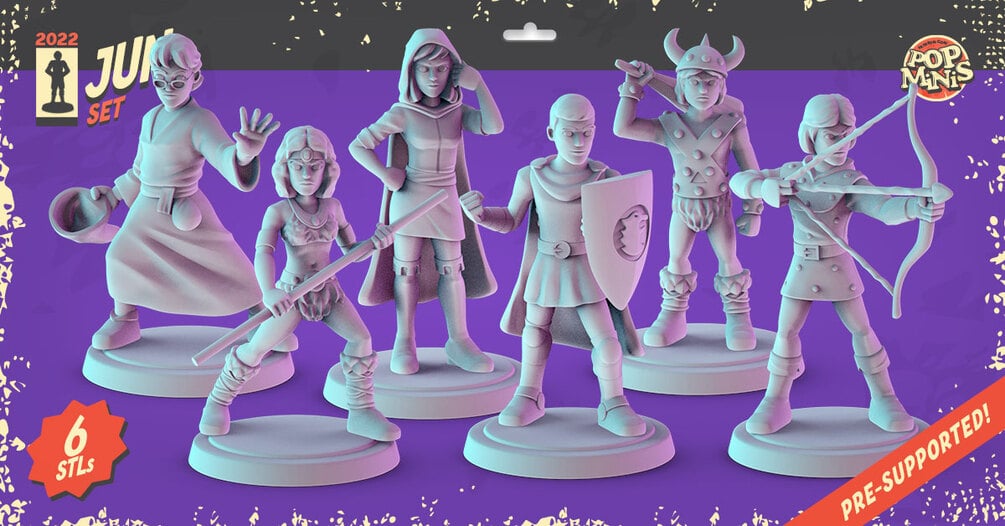 A Set of 6 miniatures, pre-supported, as STL files. Separated from the bases.